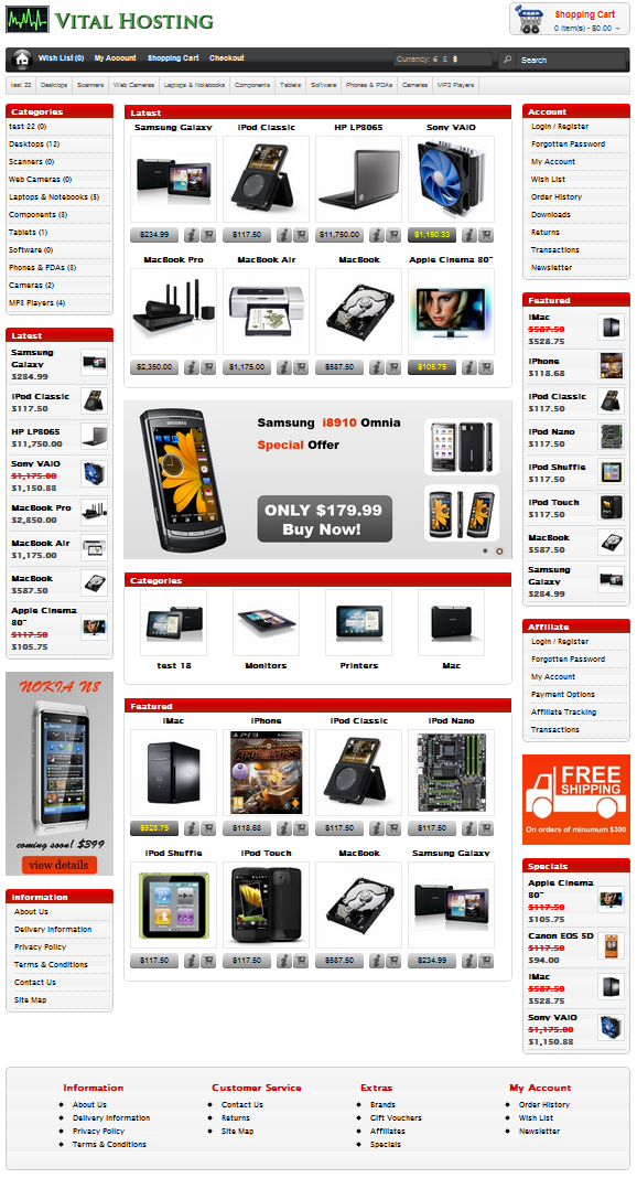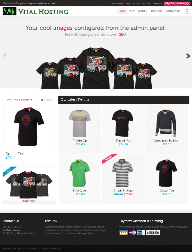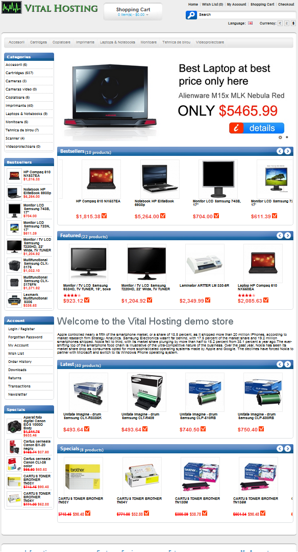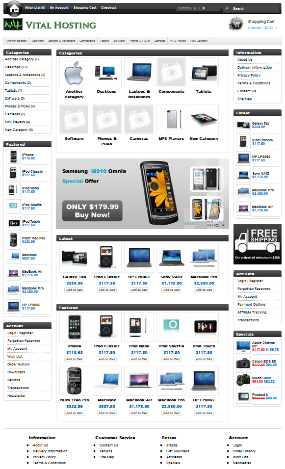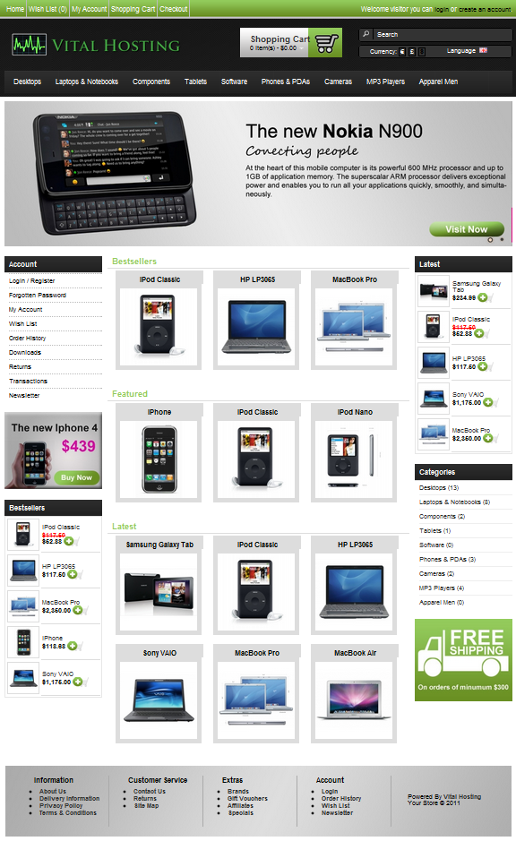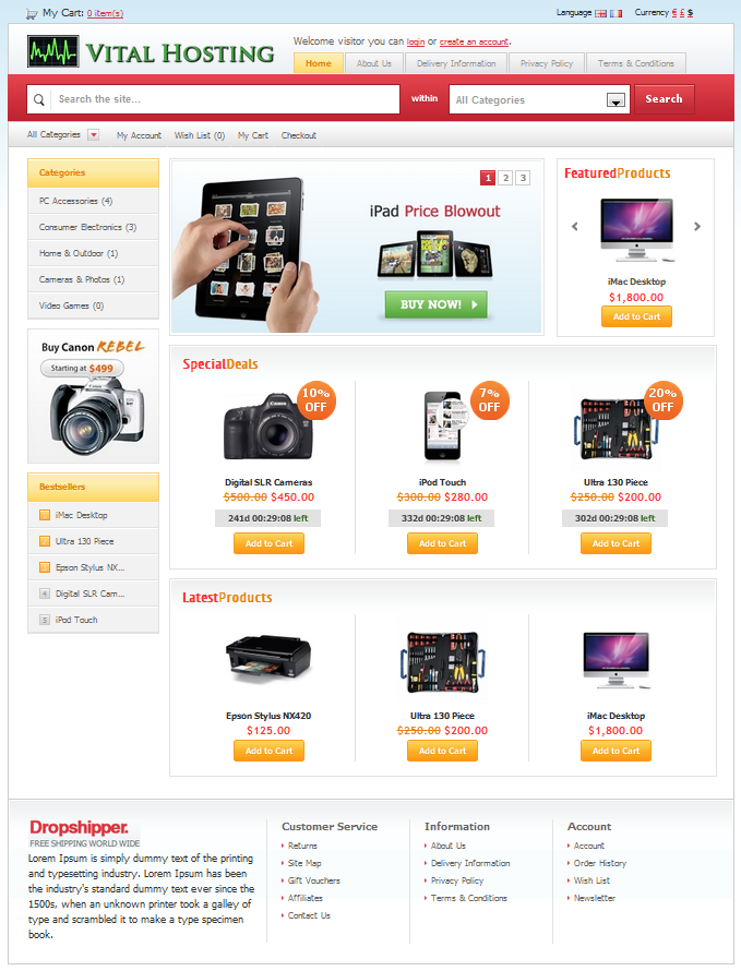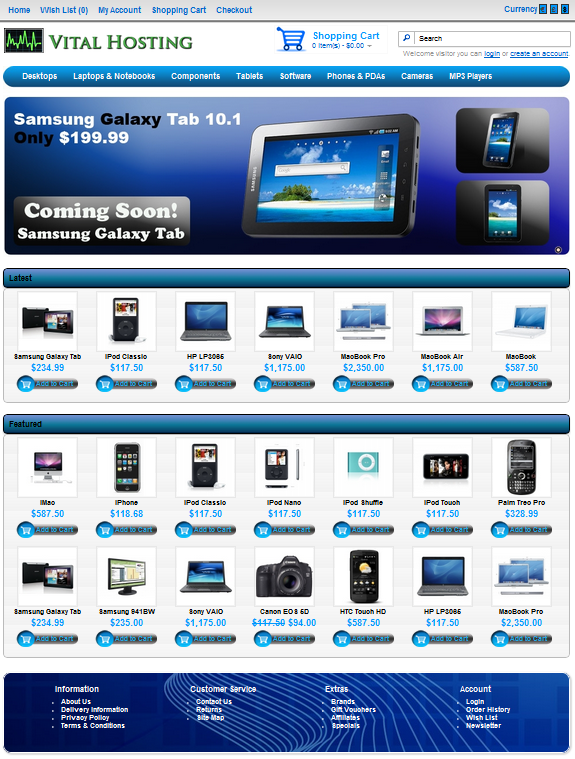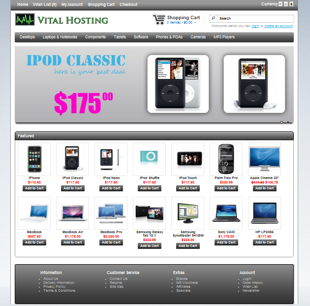 Below you'll find examples of our Premium Templates for our Vital eCart eCommerce Shopping Cart product. Stay tuned for examples of designs for our Vital CMS product.