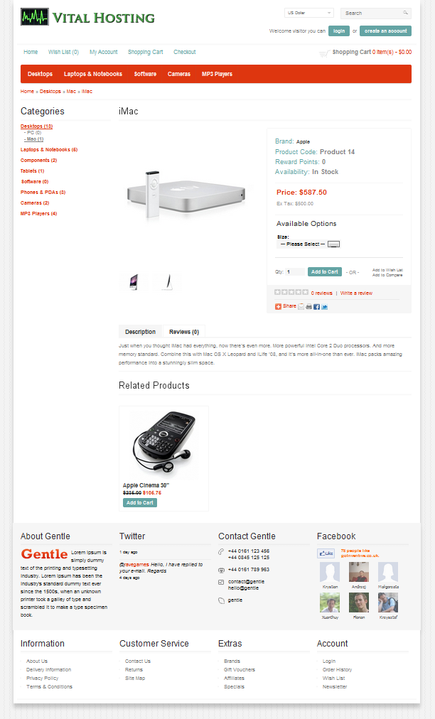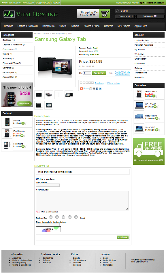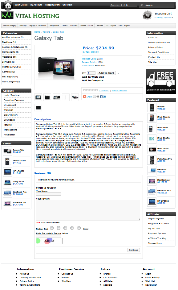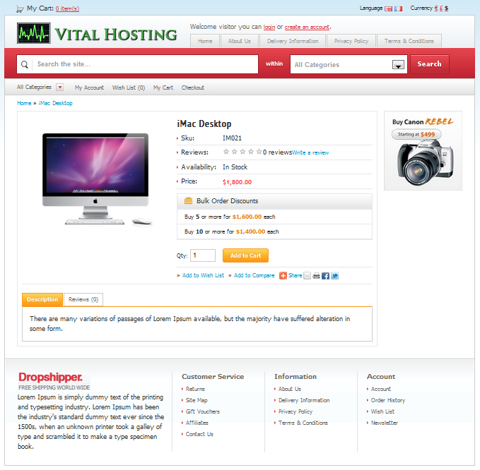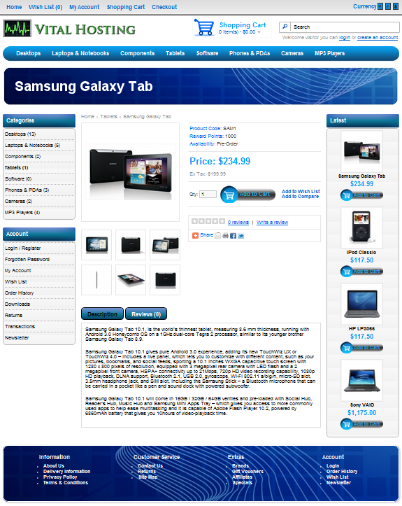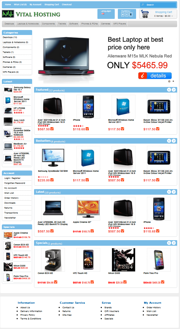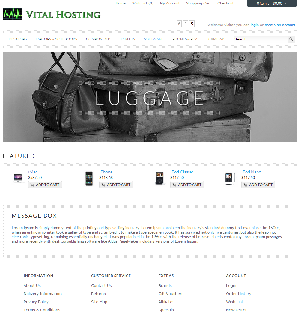 Below you'll find examples of our Premium Templates for our Vital eCart eCommerce Shopping Cart product. Stay tuned for examples of designs for our Vital CMS product.